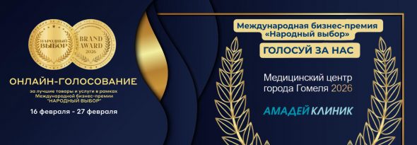 Медицинский центр Амадей Клиник представлен в номинации «Медицинский центр города Гомеля 2026» в рамках Международной бизнес-премии “Народный выбор”.
