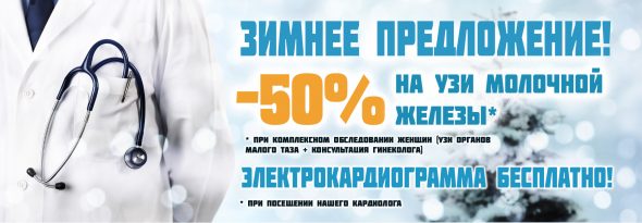 При комплексном обследовании женщин (УЗИ органов малого таза + консультация гинеколога) — на УЗИ молочной железы скидка 50%!