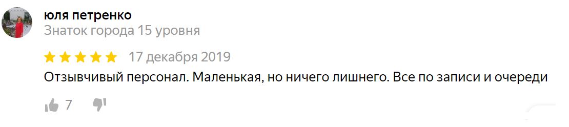 Отзывчивый персонал. Маленькая, но ничего лишнего. Все по записи и очереди