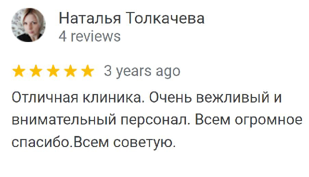 Отличная клиника. Очень вежливый и внимательный персонал. Всем огромное спасибо.Всем советую.